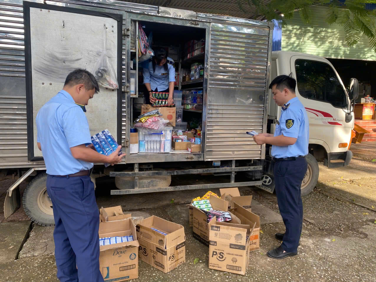 Kết quả khám phương tiện phát hiện 5.771 sản phẩm là dầu gội, dầu xả, bột giặt, kem đánh răng mang nhãn hiệu Sunsilk, Dove, OMO, P/S, Rejoice, X-MEN, có đặc điểm của hàng hóa giả mạo nhãn hiệu. Toàn bộ số hàng hoá trên được ông N.V.L mua trôi nổi trên thị trường, không có hóa đơn chứng từ kèm theo; vận chuyển từ tỉnh Bắc Ninh vào địa bàn các xã vùng sâu, vùng xa để tiêu thụ.